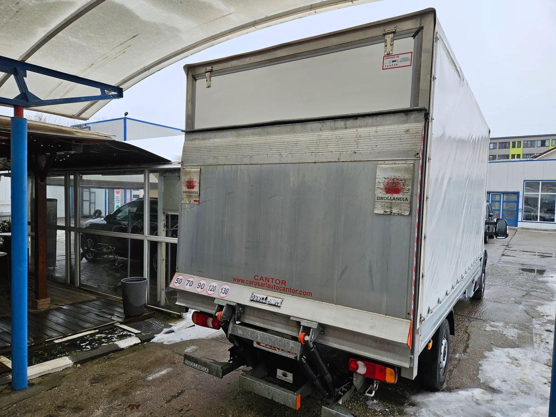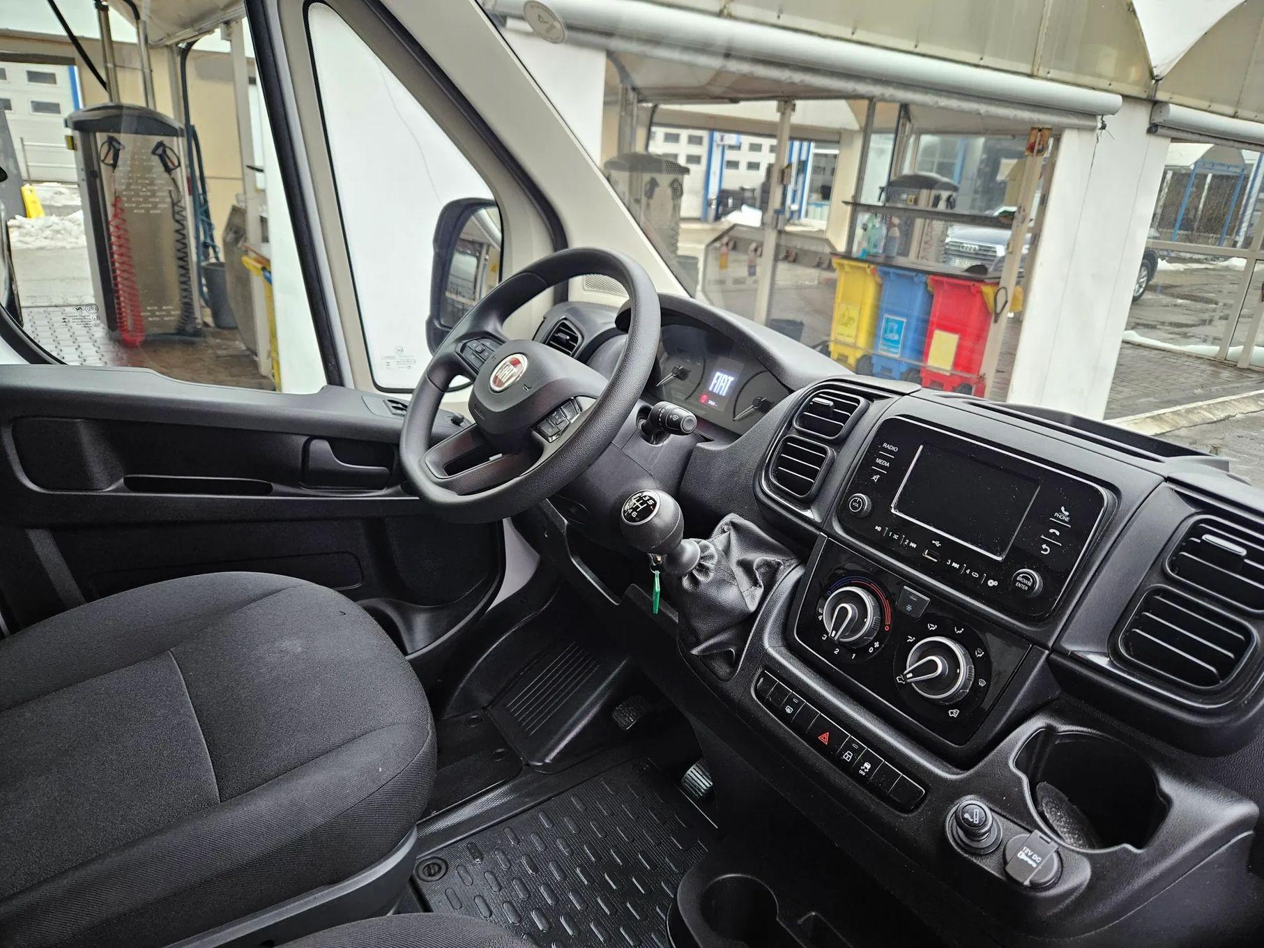 FIAT DUCATO suprastructura inchis 2.2 diesel 140 CP Lift Hidraulic GARANTIE Masina existenta pe stoc, cu livrare imediata. Modalitati de achizitie – plata integrala, leasing financiar sau credit auto Dotari (selectie): - Culoare ICY WHITE - Tapiterie standard "Crepe" de culoare neagra - Jante tabla 16'' (215/75 R16C) - Aer conditional manual - Regulator si limitator de viteza - Geamuri fata actionate electric - Oglinzi reglabile electric si incalzite - Volan reglabil in adancime - Scaun sofer cu reglaj lombar, cotiera si spatiu de depozitare - Bancheta pasager 2 locuri - Radio DAB cu comenzi pe volan - Inchidere centralizata cu telecomanda - Asistenta la parcare spate - ESC + ESP( include Hill Holder Control/ABS/EBS) - Suspensie spate bilama + Cric + Roata de rezerva de dimensiuni normale